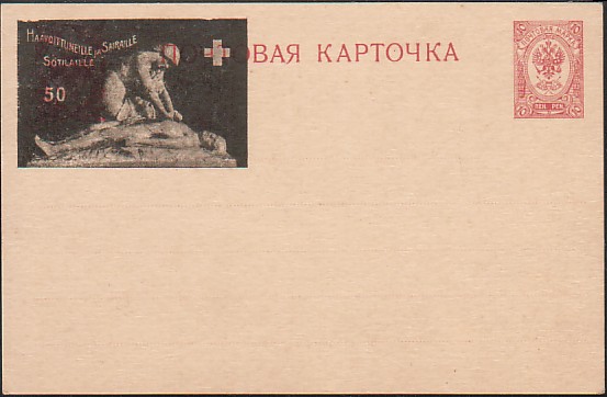 2. Существуют цельные вещи Великого Княжества Финляндского: почтовая карточка номиналом 10 п., и конверт номиналом 20 п. с допечатанной в левом верхнем углу маркой номиналом 50 п.