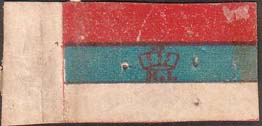 1914 г. Виньетки в виде флагов стран-союзниц России в Первой мировой войне разм. 47 х 24 мм. Одноцветная, двухцветная и трехцветная печать на белой бумаге.