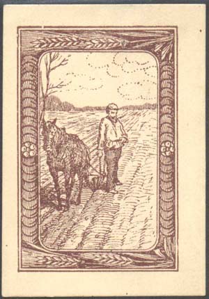 1915 г. Разм. рамки 39 х 59 мм. Одноцветная печать на бумаге различного качества. В двойной декора-тивной рамке различные рисунки. Сбор в пользу беженцев.
