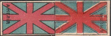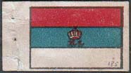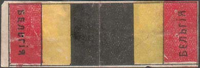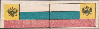 1915(?) г. Разм. 52 х 36 мм. Трехцветная двухсторонняя печать на белой бумаге. Виньетки в виде двухсторонних флагов стран-союзниц России в Первой мировой войне. Слева вертикально название флага.