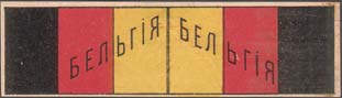 1915(?) г. Разм. 52 х 36 мм. Трехцветная двухсторонняя печать на белой бумаге. Виньетки в виде двухсторонних флагов стран-союзниц в Первой мировой войне. Слева вертикально название страны.