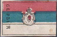 1914 г. Разм. 47 х 45 мм. Трехцветная печать на тонкой сероватой бумаге. В центре герб Варшавской губернии. Сбор в пользу населения Польши, пострадавшего от войны.