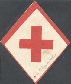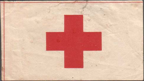 1915(?) г. Ромб разм. 40 х 42 мм. Одноцветная печать на толстой белой бумаге. В рамке в форме ромба в центре красный крест.