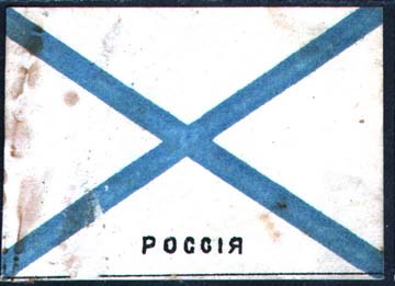Военно-морской флаг России. Текст: «Россия».