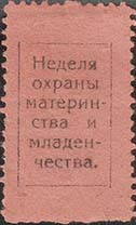 1925(?) г. Разм. по перфорации 21 х 35 мм. Одноцветная печать на светло-оранжевой бумаге. Зубц. 11 1/2. В центре в прямоугольной рамке текст в шесть строк: «Неделя охраны материнства и младенчества».