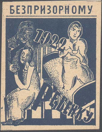 1922 г. 10-17.01.1922 г. Разм. 56 х 73 мм. Одноцветная печать на плотной кремовой бумаге. Разм. рис. 51 х 61 мм. В центре медсестра, ухаживающая за двумя беспризорными детьми. Сверху текст: «Беспризорному». Ниже по диагонали продолжение текста: «1922 Ребенку».