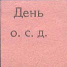 1924(?) г. Разм. 21 х 23 мм. Одноцветная печать на светло-розовой бумаге. В центре текст в две строки: «День О.С.Д.».