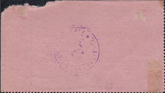 Существуют знаки данного выпуска с фиолетовым оттиском круглой печати с неразборчивым текстом.