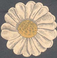 1915(?) г. Виньетка сложной формы в виде ромашки разм. 33 х 33 мм. Двухцветная печать на белой бумаге.