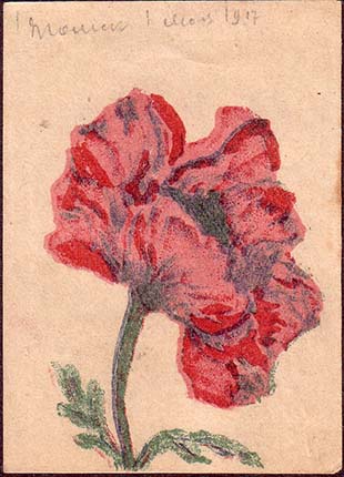 1917 г. 01.05.1917 г. Разм. 52 х 72 мм. Трехцветная печать на белой бумаге. В центре цветок мака.