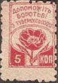 1925 г. Разм. рамки 11 х 15,5 мм. Одноцветная печать на белой бумаге. Нерегулярная зубц. С клеем. В двойной прямоугольной рамке в центре цветок мака. Сверху полукругом текст на украинском языке в три строки: «Помогите борьбе с туберкулезом». Внизу номинал.