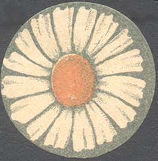 1915(?) г. Разм. 49 х 51 мм. Двухцветная печать на белой бумаге. В центре на сплошном фоне цветок ромашки.