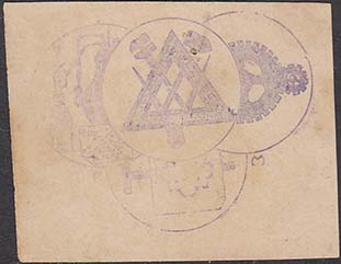 Существуют знаки данного выпуска с фиолетовыми оттисками круглой контрольной печати на лицевой стороне.