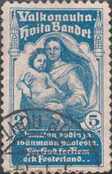 1905 г. Разм. рамки 20 х 33,4 мм. Одноцветная печать на белой бумаге. Зубц. 11 1/2. С клеем. В прямоугольной декоративной рамке в центре женщина с младенцем на руках. Тексты на финском и шведском языках. Внизу по бокам номинал в круглых рамках.