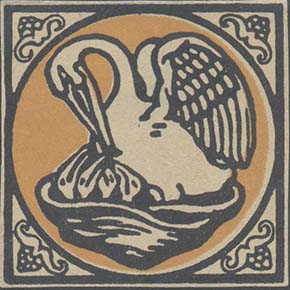 1915 г. Разм. 47,5 х 47,5 мм. Двухцветная печать на желтоватой бумаге. В центре аист, кормящий птенцов в гнезде.