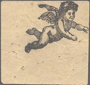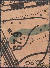 1927(?) г. Разм. 50 х 36 мм. Одноцветная печать на желто-серой бумаге. В центре в прямоугольной рамке разм. 40 х 27 мм различные тексты.