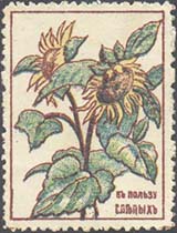 1913(?) г. Разм. рамки 25 х 34 мм. Трехцветная печать на белой бумаге. Зубц. 11 1/2. В центре в прямоугольной рамке два растения подсолнечника. Внизу справа текст в две строки: «В пользу слепых».