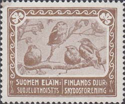 1907 г. Разм. рамки 37,5 х 30,5 мм. Одноцветная печать на белой бумаге. Зубц. 11 3/4. С клеем. В прямоугольной раме различные сюжеты. Внизу текст в две строки на финском и шведском языках.