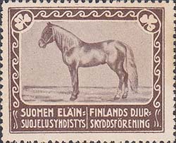 1904 г. Разм. рамки 23 х 42 мм. Одноцветная печать на белой бумаге. Зубц. 11 1/4. С клеем. В прямоугольной раме в центре лошадь, запряженная в телегу. Тексты на шведском и финском языках.