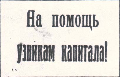 Текст в две строки: «На помощь узникам капи-тала!».