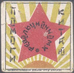 1930(?) г. Разм. 37 х 37 мм. Трехцветная печать на сероватой бумаге с мелованным верхним слоем. В прямоугольной рамке в центре пятиконечная звезда на фоне лучей восходящего солнца. Текст: «Помоги революционному Китаю». Внизу под рамкой выходные данные мелким шрифтом: «Типолитография им. Ильича. Р н/д Зак. №751». По углам знака разграничительные линии.