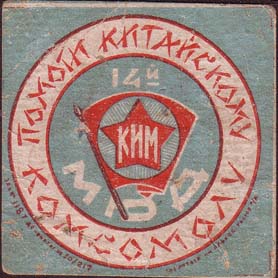1928 г. 02.09.1928 г. Разм. 46 х 46 мм. Двухцветная печать на желтоватой бумаге с мелованным верхним слоем. В центре в двойной круглой рамке диаметром 43 мм комсомольский значок. По окружности текст: «14-й МЮД». Между рамками по окружности шрифтом, стилизованным под китайские иероглифы, текст: «Помоги Китайскому Комсомолу». Внизу под рамкой выходные данные мелким шрифтом: «Заказ 1167 Доноблит. № 10/217. Типолитография им. Ильича. Ростов н/д».