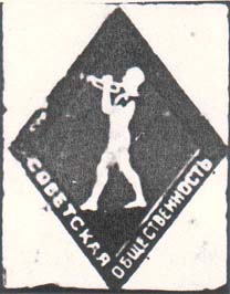 1930(?) г. Разм. 59 х 58 мм. Одноцветная печать на плотной бумаге различного качества. В центре прямоугольной рамке 51 х 50 мм дополнительная круглая рамка диаметром 33 мм. В круглой рамке пионер с горном на фоне демонстрации. По внутреннему периметру прямоугольной рамки текст: «В неделю пионер-слетов окажем помощь детям пролетариев зарубежных стран!».