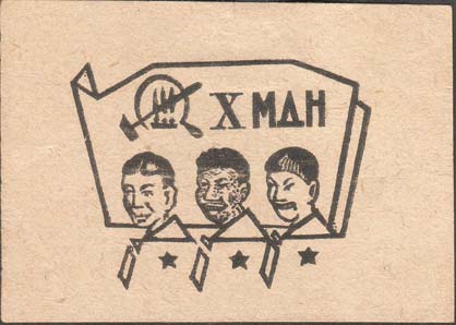 1924 г. Разм. рамки 25 х 36 мм. Одноцветная печать на кремовой бумаге. С клеем. В центре в прямо-угольной рамке различные рисунки. Сверху номинал. Внизу аббревиатура «М.О.П.Р.». Сверху в отдельной прямоугольной рамке аббревиатура «М.О.П.Р.» на узбекском языке арабским шрифтом.