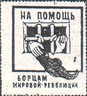 1924(?) г. Разм. рамки 33,5 x 31 мм. Двухцветная печать на желтоватой бумаге. Зубц. 11 1/2. С клеем. В прямоугольной рамке в центре эмблема МОПР. Сверху текст: «На помощь». Внизу под рамкой продолжение текста в две строки: «Борцам мировой революции».