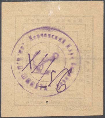 1923 г. 23.09.1923 г. Разм. рамки 33 х 22 мм. Одноцветная печать на розово-малиновой бумаге. Нерегулярная зубц. В центре в прямоугольной рамке декоративной рамке текст в три строки: «В пользу Черноморской газеты «Моряк»». По углам цифры номинала.