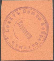 Марки этого выпуска встречаются с оттисками круглых печатей различных организаций на оборотной стороне.