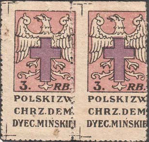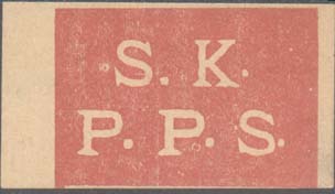 1917 г. Ромб разм. 40 х 40 мм. Одноцветная печать на розовой бумаге. В центре аббревиатура на польском языке в две строки: «K.P.R. S.D.K.Р.IL.». Сверху бант из тонкой красной материи.