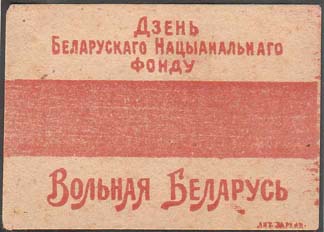 1917 г. 25.07.1917 г. 1917 г. (25.07.1917 г.). Разм. 54 х 39 мм. Одноцветная печать на желтоватой бумаге. Виньетка в виде белорусского флага. Сверху текст в три строки на белорусском языке: «День Белорусского Национального фонда». Внизу текст: «Вольная Беларусь».