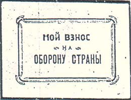 1930 г. 25.11.1930 г. Разм. 67 х 50 мм. Одноцветная печать на розовой бумаге. В двойной декоративной рамке разм. 51 х 33 мм текст в три строки: «Мой взнос на оборону страны».