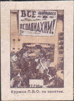 Группа людей в комнате. Текст: «Кружок ПВО на занятии».