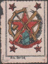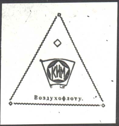 1926(?) г. Разм. 66 х 68 мм. Одноцветная печать на зеленой бумаге. В треугольной рамке из волнистых линий значок КИМ. Ниже текст: «Воздухофлоту».