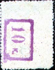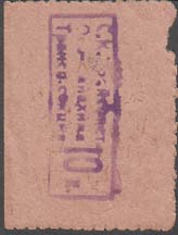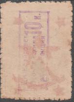 1932(?) г. Четвертый вспомогательный выпуск. Серо-фиолетовая надпечатка на оборотной стороне нового номинала в виде текста: «10 к.» в рамке.