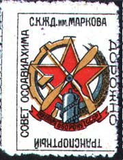 1931 г. Первый выпуск. Разм. рамки 23 х 32,5 мм. Многоцветная печать на бумаге различных цветов c мелованным верхним слоем, тонированным в различные цвета. В двойной прямоугольной рамке в центре эмблема ОСОАВИАХИМ. По углам пятиконечные звезды. Внизу под рамкой слева выходные данные мелким шрифтом: «А 10. 25.-36.». На оборотной стороне фиолетовый оттиск штампа разм. 22 х 8 мм. В штампе слева текст в три строки: «С[еверо].-К[авказский]. Крайсов[ет]. Осо-Авиахима. Трансп[ортная]. секция». Справа крупным шрифтом номинал: «10 к.».