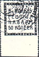 1924 г. Фиолетовая надпечатка нового номинала ручным штампом в виде текста: «10 к.» на знаке предыдущего выпуска.