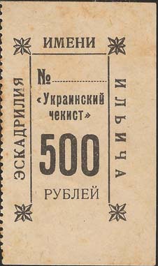 1923 г. Одноцветная печать на белой бумаге. Нерегулярная зубц. Номинал и текст в две строки: «Эскадрилья имени Ильича».