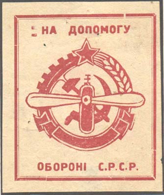 1928 г. 15.07.1928 г. Разм. 55 х 65 мм. Одноцветная печать на желтоватой бумаге. В двойной прямоугольной рамке разм. 48,5 х 57 мм в центре эмблема АВИАХИМ. Текст в две строки на украинском языке: «В помощь обороне С.С.С.Р.».