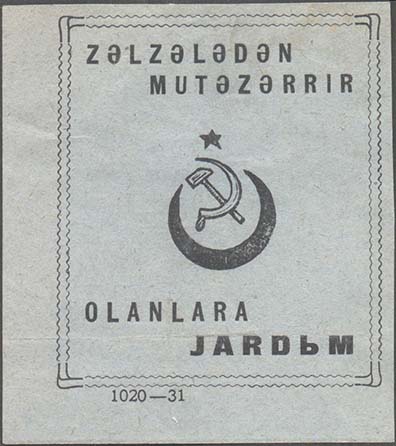 1926(?) г. Разм. 66 х 75 мм. Одноцветная печать серо-зеленой бумаге. В двойной прямоугольной рамке из волнистых линий разм. 55 х 63 мм в центре серп и молот, звезда и полумесяц. Сверху текст в две строки на азербайджанском языке латинским шрифтом. Внизу текст в две строки на местном языке латинской графикой. Внизу под рамкой выходные данные мелким шрифтом: «1020-31».