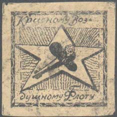 1924(?) г. Разм. рамки 32 х 32 мм. Одноцветная печать на светло-коричневой бумаге. В прямоугольной рамке на фоне пятиконечной звезды самолет, летящий вправо вверх. Сверху текст: «Красному». Внизу продолжение текста: «Воздушному флоту».