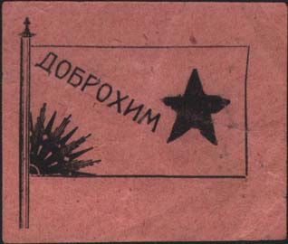 1924(?) г. Разм. 53 х 45 мм. Одноцветная печать на розовой бумаге. В центре флаг ДОБРОХИМ.