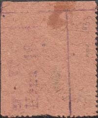 1933 г. Разм. рамки 23 х 32 мм. Многоцветная печать на желтоватой рыхлой бумаге низкого качества. Зубц. 11 1/2. В двойной прямоугольной рамке эмблема ОСОАВИАХИМ. По углам пятиконечные звезды. На оборотной стороне фиолетовый оттиск прямоугольного штампа с вертикальным неразборчивым текстом и номиналом.