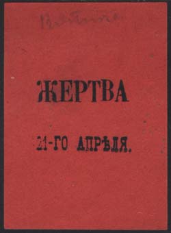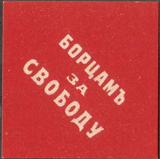 1917 г. Ромб разм. 55 х 55 мм. Одноцветная печать на белой (оттенки) бумаге. Текст в три строки: «Борцам за свободу».