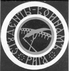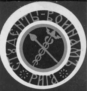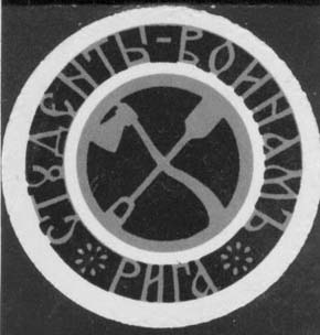 1914 г. 10.11.1914 г. Серия виньеток в форме круга диаметром 45 мм. Двухцветная печать на плотной белой бумаге. В центре круга эмблемы факультетов Рижского Политехнического института, по окружности текст: «Студенты воинам. Рига».