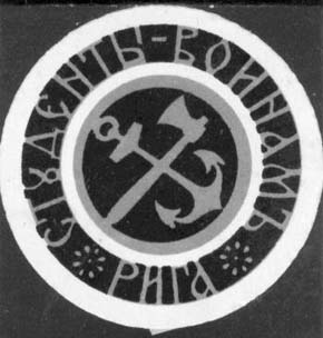 1917(?) г. Ромб разм. 67 х 67 мм. Одноцветная печать на желтоватой бумаге. В центре знак латышского стрелка.