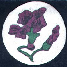 1915 г. 27.02.1915 г. Серия виньеток в форме круга диаметром 36 мм. Двухцветная печать на толстой сероватой бумаге. В центре цветы фиалки. Сбор «День фиалки» на белье для воинов.