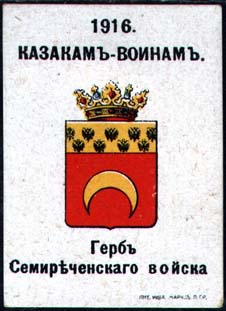 Герб Семиреченского Казачьего войска. Текст под гербом: «Герб Семиреченского войска».